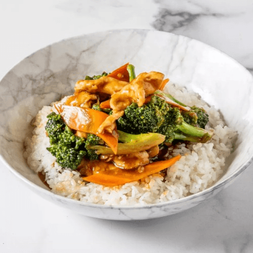Hot. It's tradition Szechuan cuisine, slice beef sauteed with Szechuan sauce over bed of vegetables. Served with white or brown rice