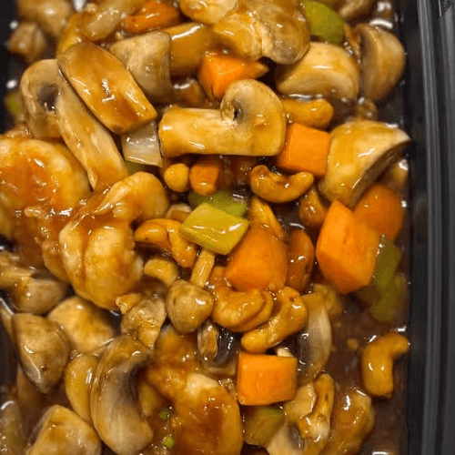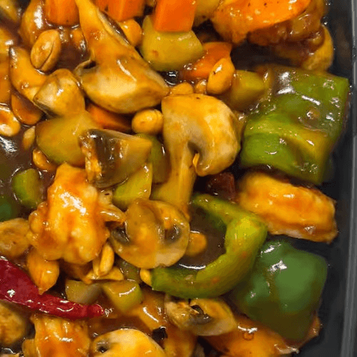 peanuts, carrots, mushroom , bell pepper spicy brown sauce