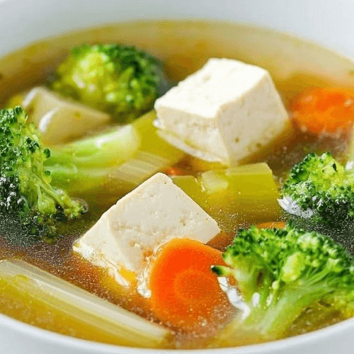 Mushroom, peas carrot in lobster broth, and drizzled with egg white
