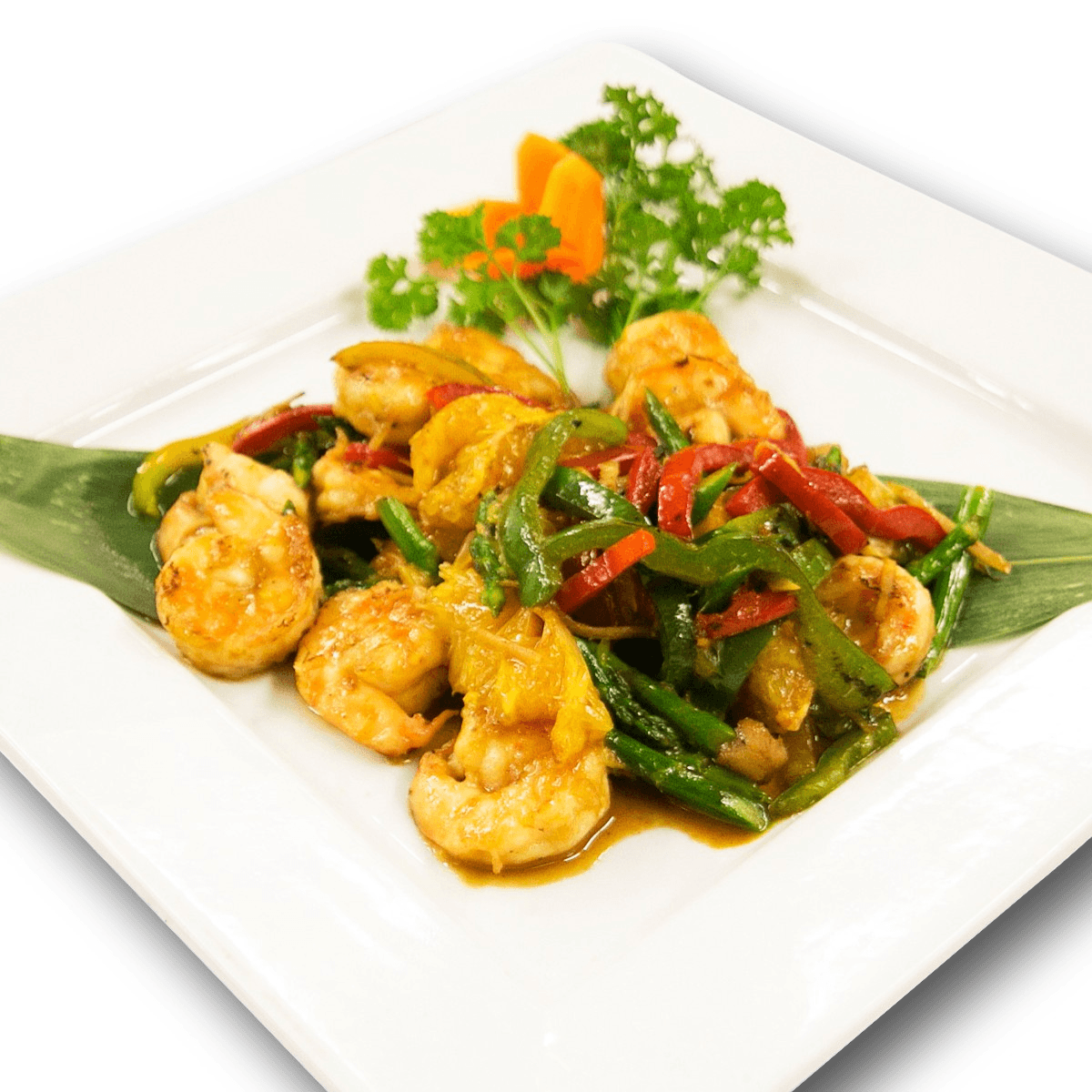 Famous Asian rice noodle, bean sprouts, eggs & peanuts. Please choose shrimp or chicken or pork or vegetable only