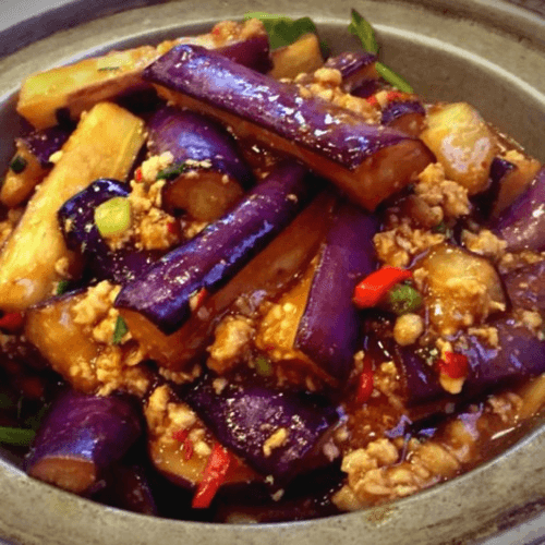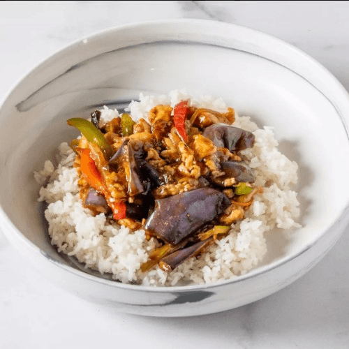 Hot. Eggplant, bell pepper, scallion in chef's special spicy garlic sauce