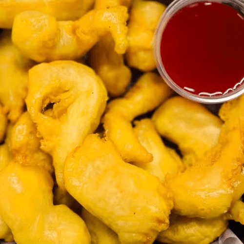 white meat chicken, crispy , sweet and tangy spicy sauce