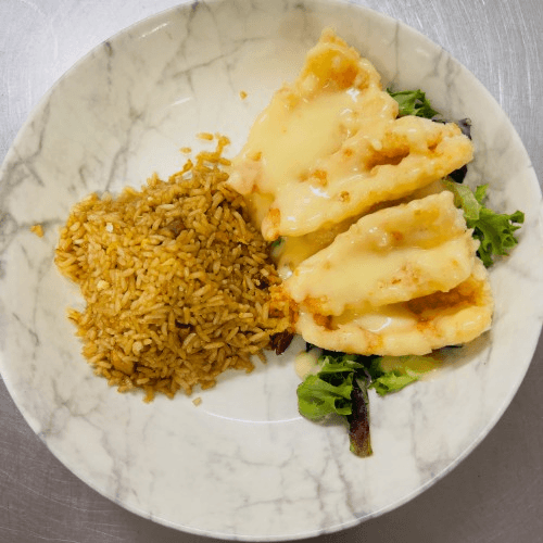 Jumbo shrimp lightly crispy with tangy creamy sauce