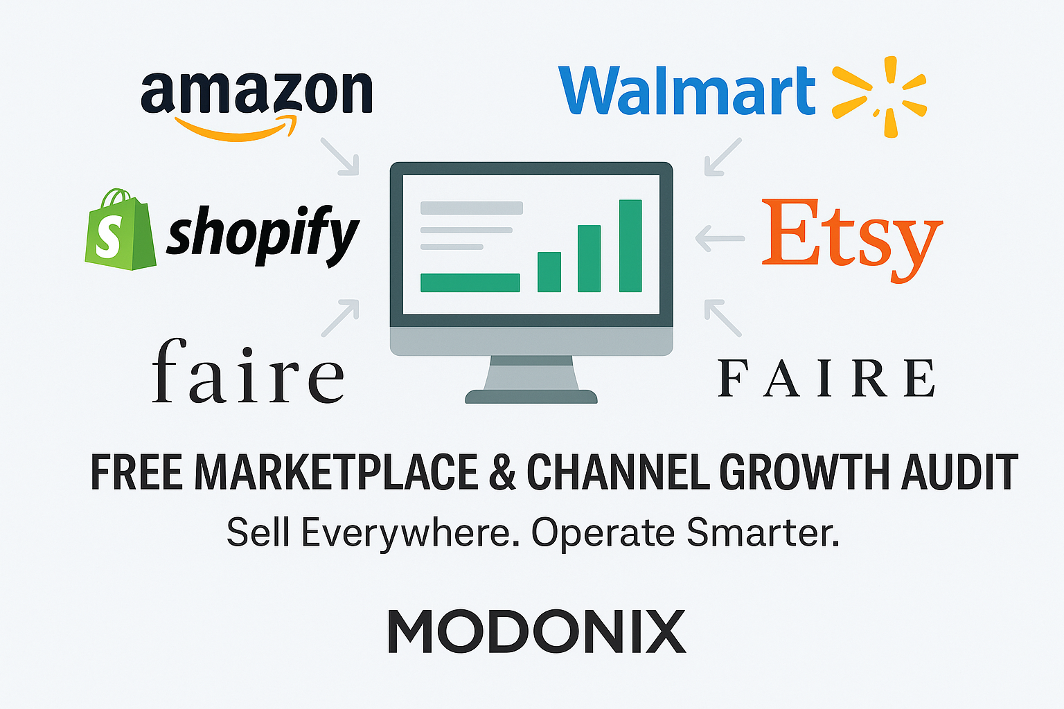 Get a Free Marketplace Growth Audit – Sell Smarter Across Every Channel Whether you're selling on Amazon, Walmart, Shopify, Faire, Etsy, or even B2B marketplaces like ThomasNet or Alibaba, each platform has unique opportunities — and unique challenges. At Modonix, we help you unlock growth across multiple sales channels with a system that’s optimized for profit, automation, and scale. And to get you started, we offer a completely free multi-channel growth audit — no strings attached.