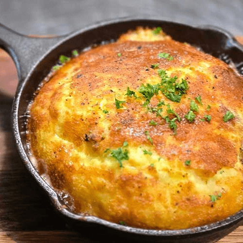 Egg souffle, tasso ham, gruyere