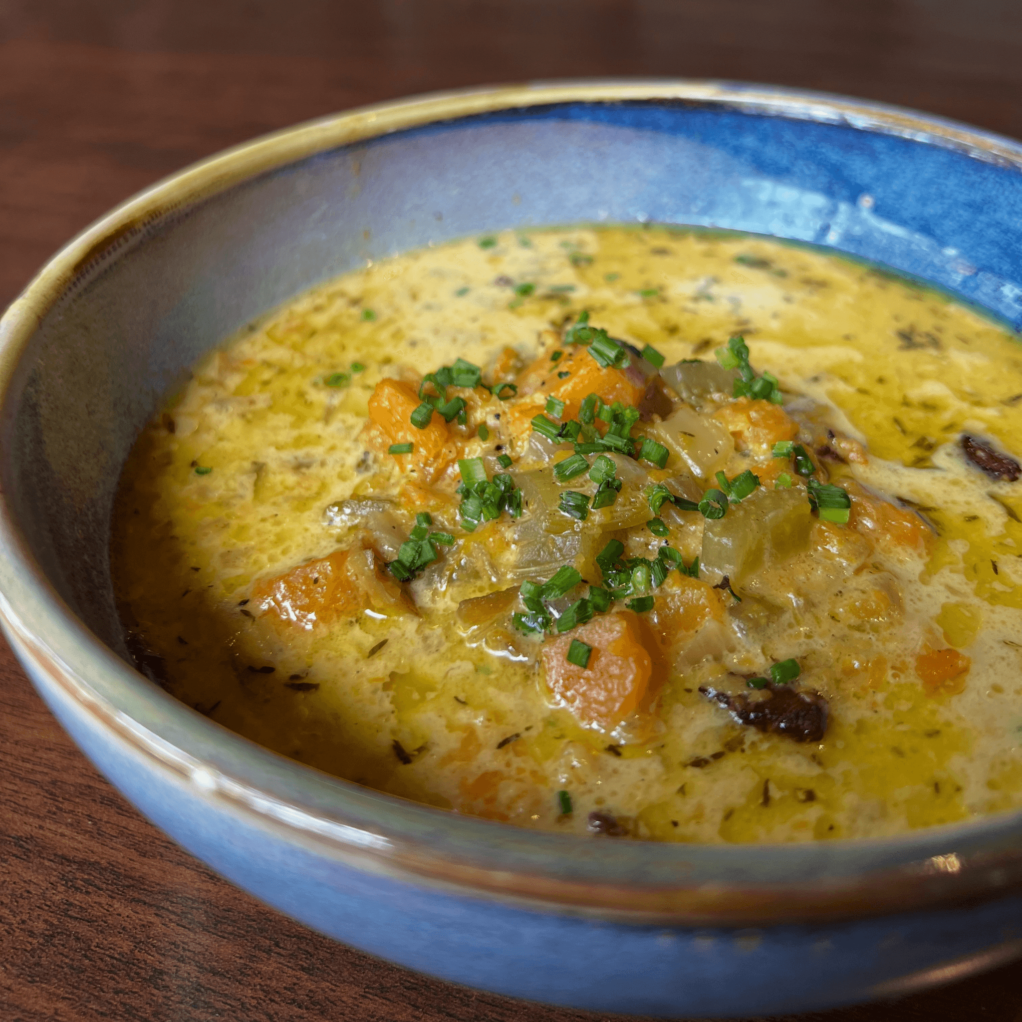 Gluten free. Pork belly, clam broth, cream, butter, chive