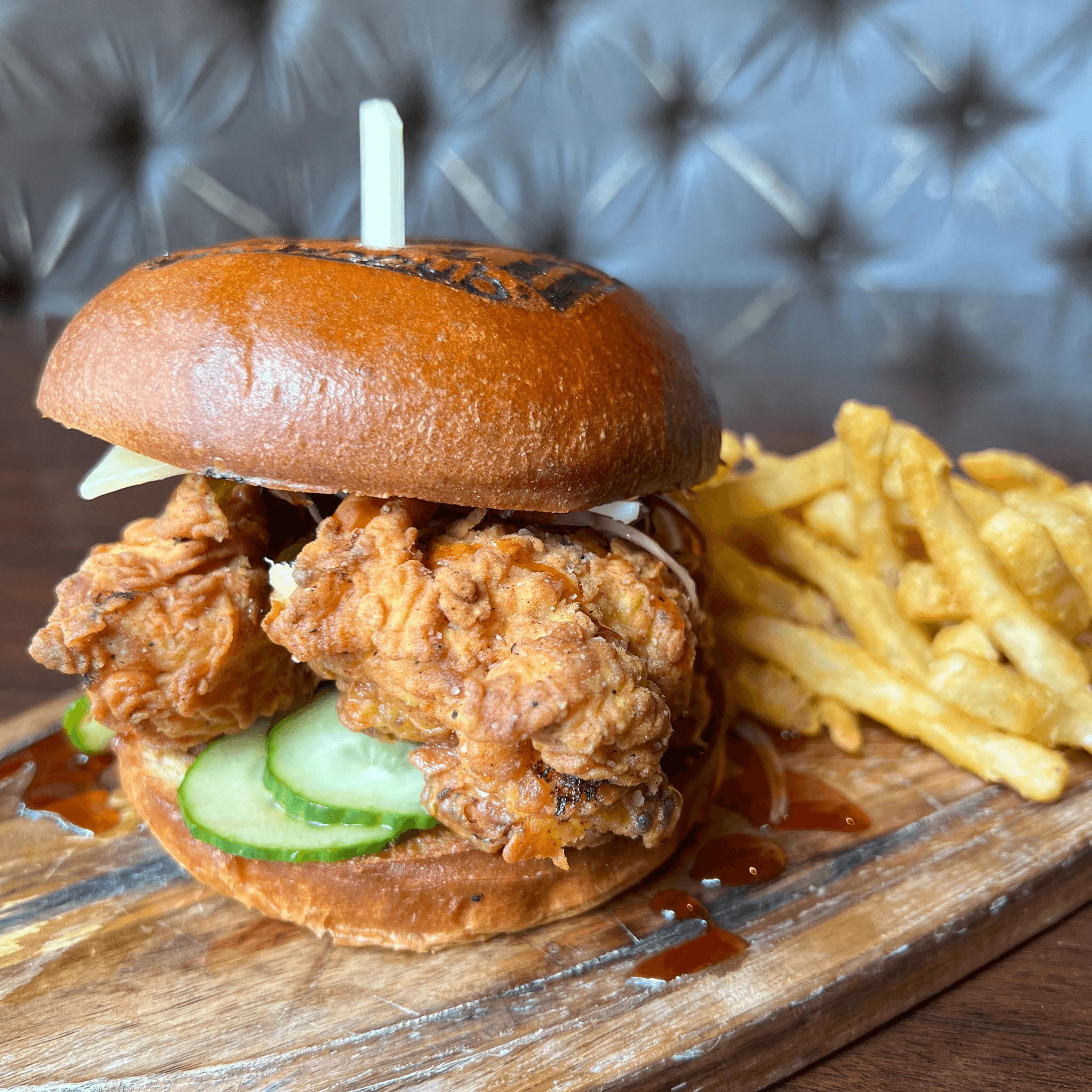 Cheddar cheese, spicy pickles, shaved red onion, cowboy candy, hot honey