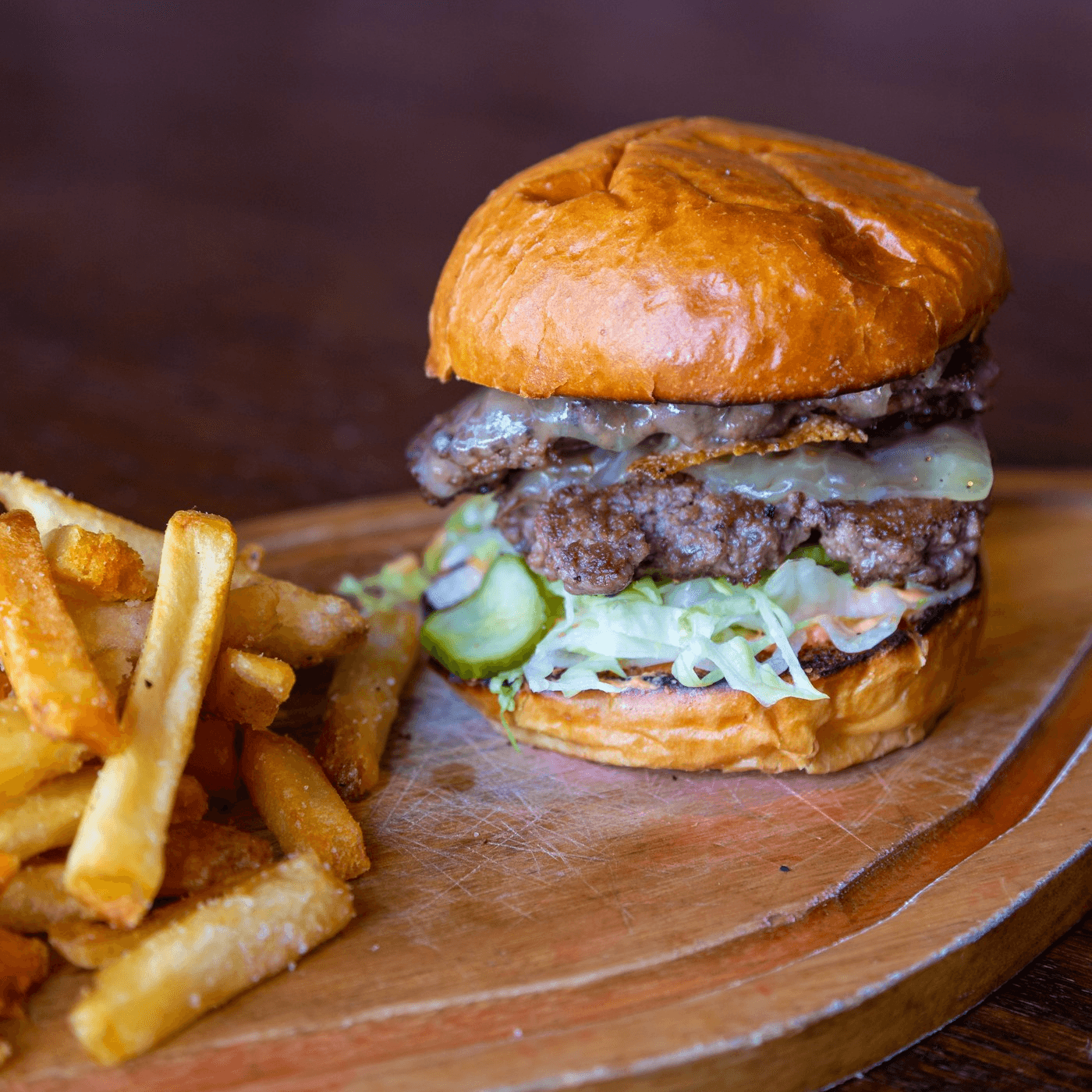 Two 4 oz smash patties, cheddar cheese.
