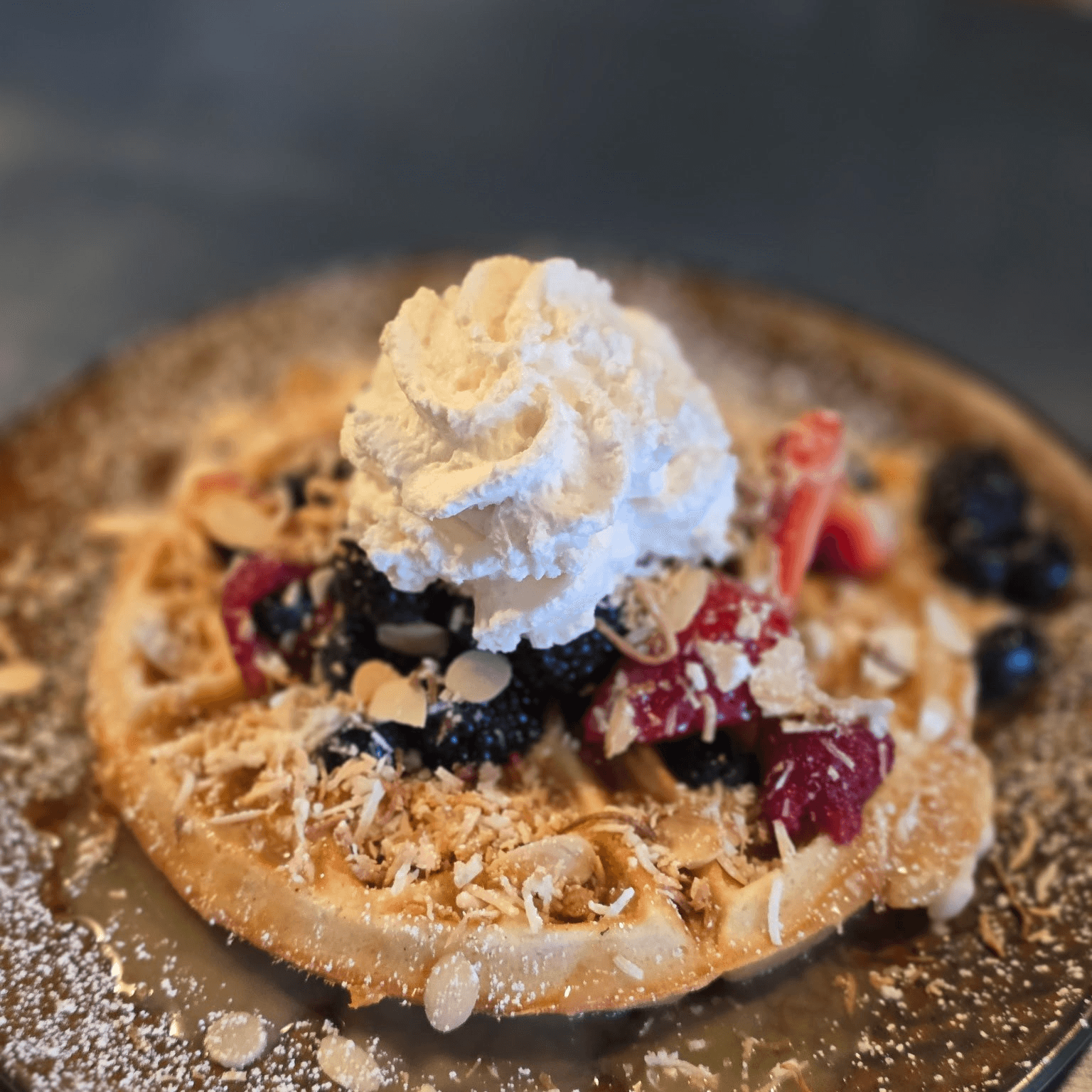 Brioche, fresh berries, maple syrup, vanilla whipped cream (vegetarian)