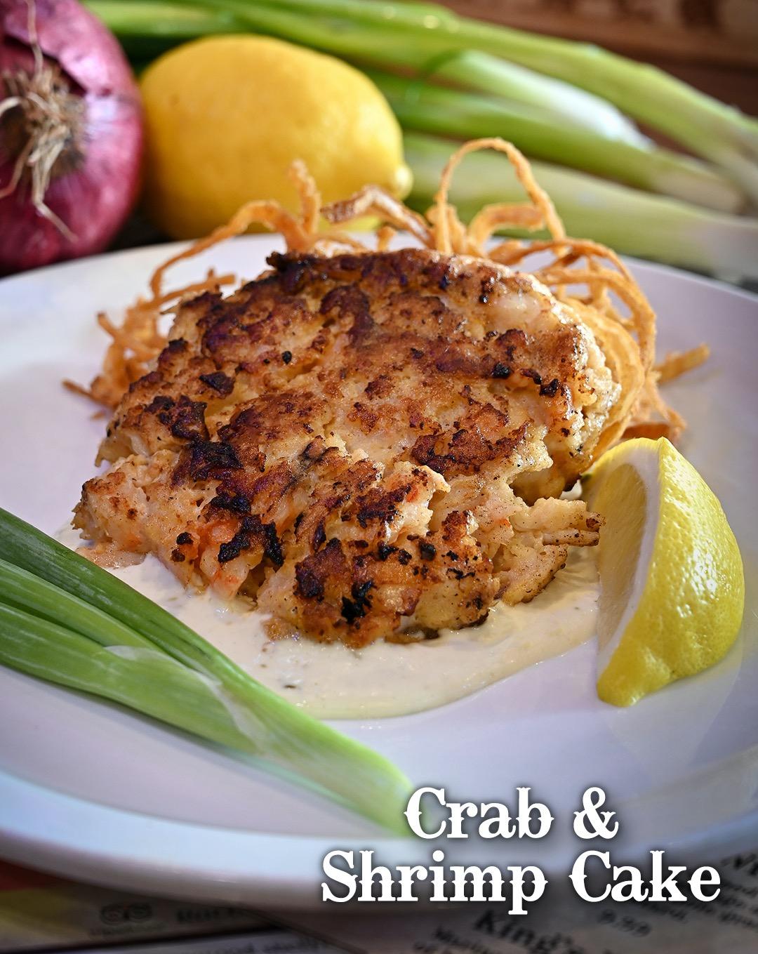 Twin cakes loaded with Blue Crab and shrimp. Griddled or blackened, served with spicy fried onions and creamy remoulade.